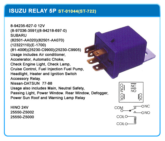 Usage also includes Main, Neutral Safety, Passing Light, Power Window, Rear Window, Defogger, Power Sun roof and Warning Lamp Relay.